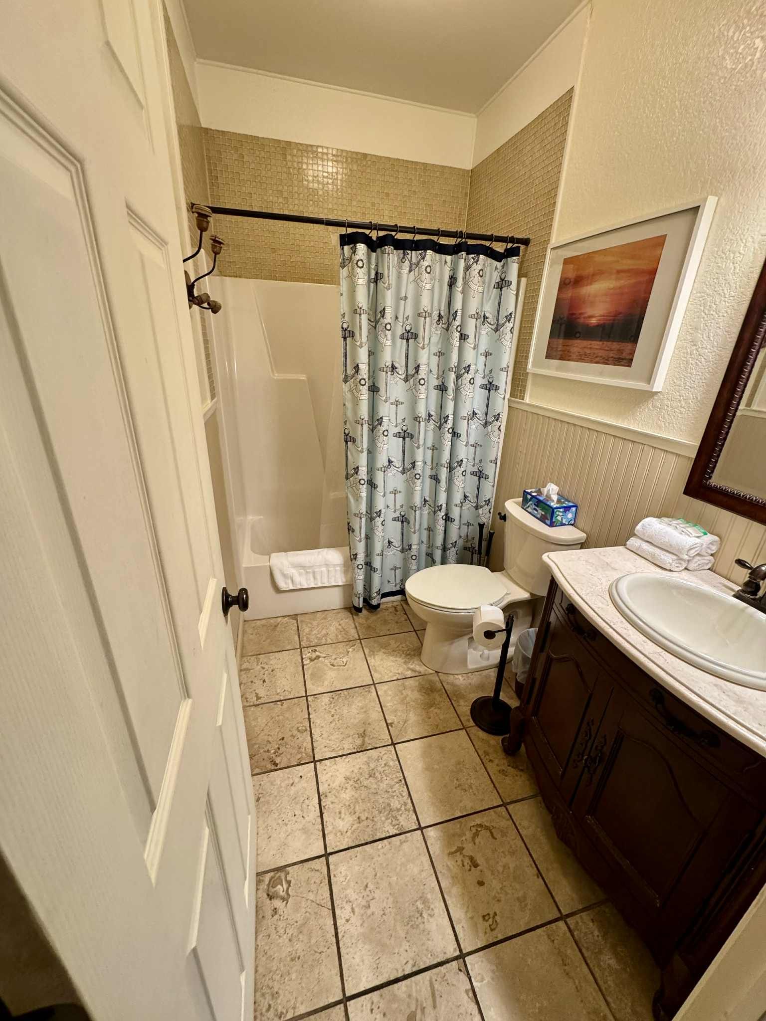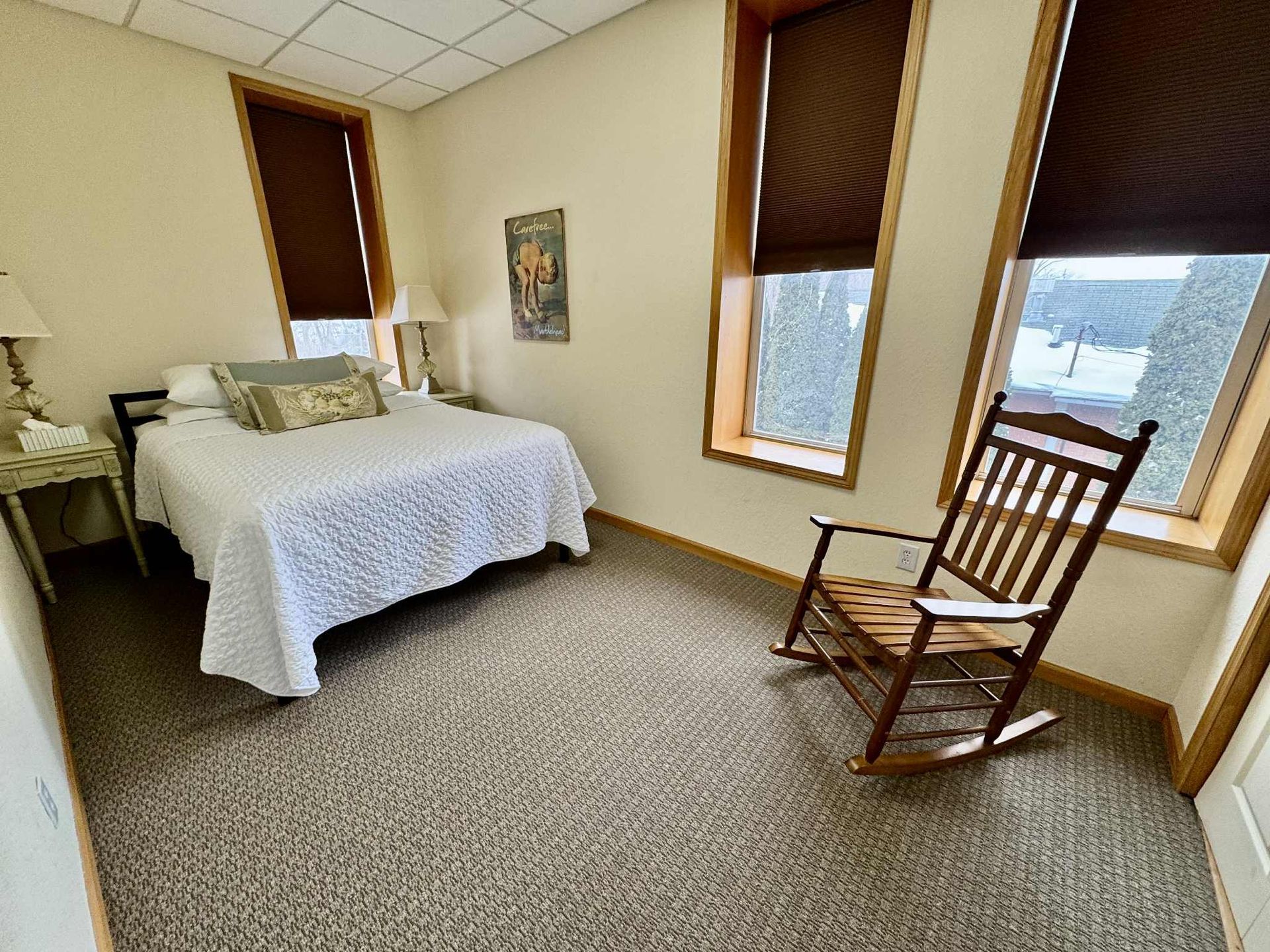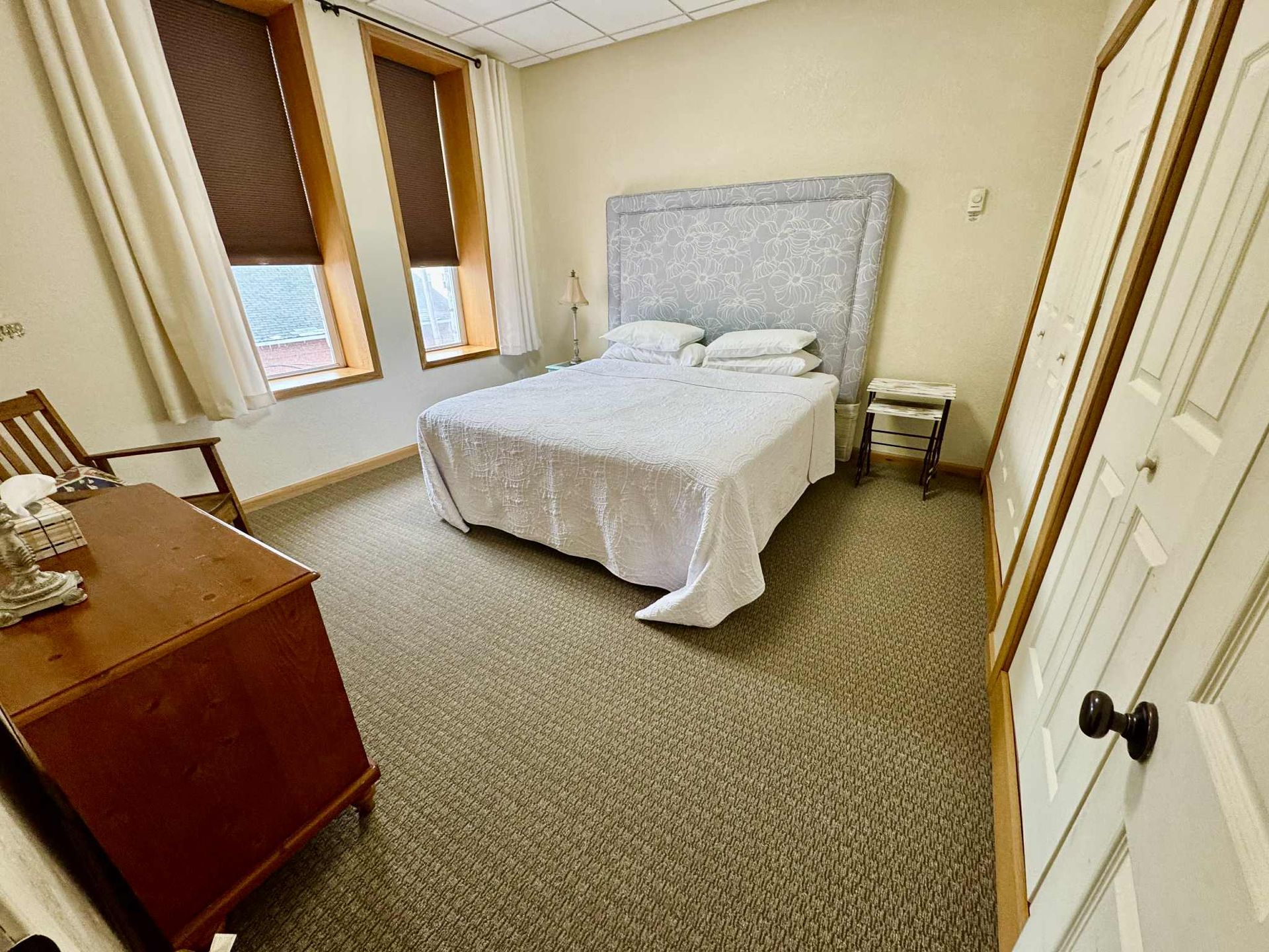 Enjoy either a queen bedroom and a king bedroom, and a lovely bathroom, complete with new tile and updated fixtures. The kitchen comes with stainless steel appliances and granite counter tops, coffee maker, toaster, cookware, dishes and utensils. Each of our rooms also includes complimentary wi-fi, cable, bottled water and a bottle of wine, your choice of red or white. The Johnson's Island Room is located on the second floor of the building and is accessible by an interior staircase. Please note- there are no elevators at the inn.